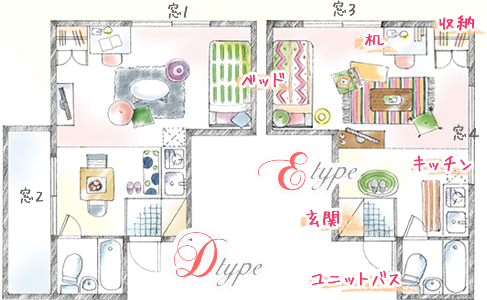 各部屋1室づつの特別タイプ。20.55㎡の広さで他の部屋と比べると広いのにお得なタイプです。